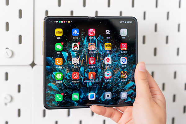對(duì)于折疊屏手機(jī),許多人有著不同的觀點(diǎn),有人覺(jué)得折疊屏是小型的平板,同樣的機(jī)身尺寸提供更大屏幕,機(jī)身厚重一些可以妥協(xié),但也有人認(rèn)為折疊屏手機(jī)是屏幕尺寸不變的狀態(tài)下通過(guò)折疊帶來(lái)更好的手感體驗(yàn)和便攜性。而作為一款左右翻折的內(nèi)折折疊屏手機(jī),而OPPO Find N的設(shè)計(jì)方案卻是介于這兩者之間,既有著相對(duì)小巧的尺寸,也有著不小的內(nèi)屏顯示面積,它在折疊狀態(tài)下的尺寸甚至比不少常規(guī)的全面屏手機(jī)還要小一些,外屏僅有5.49英寸大小,感覺(jué)就像是一款小屏手機(jī),但由于是折疊屏手機(jī),機(jī)身重量還是達(dá)到了275g,但單手握持操控的手感體驗(yàn)確實(shí)比起其它幾款左右折疊的手機(jī)要更好一些,當(dāng)然厚度還是不小,握持使用時(shí)對(duì)小拇指的壓迫感也較為明顯。值得一提的是,外屏的右側(cè)區(qū)域略做了一點(diǎn)微曲的設(shè)計(jì),在全面屏的手勢(shì)操控體驗(yàn)上也有著不錯(cuò)的手感體驗(yàn)。