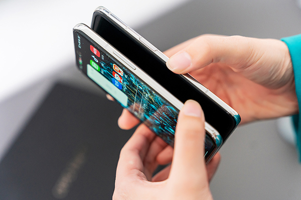 手機(jī)展開(kāi)時(shí)呈現(xiàn)的內(nèi)屏則是7.1英寸大小,屏幕比例是8.4:9,接近一個(gè)正方形的顯示比例。通過(guò)不同角度仔細(xì)觀察,可以發(fā)現(xiàn)這款折疊屏展開(kāi)后在正面近距離觀測(cè)時(shí)幾乎沒(méi)有一點(diǎn)折痕,原先對(duì)于折疊屏手機(jī)折痕吹毛求疵的朋友在看到這款手機(jī)時(shí)相信也會(huì)不禁贊嘆,OPPO Find N之所以能夠做到折痕不明顯,原因之一在于這款折疊屏手機(jī)采用了水滴鉸鏈。相比折疊屏手機(jī)中常用的U型鉸鏈,水滴鉸鏈的彎折半徑更大,更大的彎折半徑也就讓其更不容易在彎折區(qū)域留下明顯的印記,折痕也就不明顯了,當(dāng)然代價(jià)也是有的,水滴鉸鏈會(huì)比U型鉸鏈的折疊屏手機(jī)厚度更大一些,另外屏幕的原材料優(yōu)化以及一些OPPO自研的相關(guān)技術(shù)也讓Find N的折痕變得更加不易察覺(jué),一款幾乎看不到折痕的折疊屏手機(jī),是不是讓更多的人對(duì)它產(chǎn)生了一點(diǎn)興趣呢?