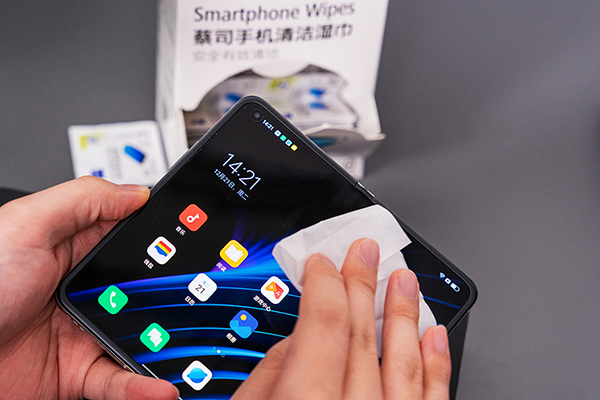 OPPO Find N折疊屏手機(jī)的時(shí)候內(nèi)屏顯示規(guī)格素質(zhì)很高,而且折疊屏在使用過(guò)程中,反復(fù)折疊打開(kāi),很容易站上指紋和油漬,因此十分建議日常使用蔡司手機(jī)清潔濕巾進(jìn)行日常清潔保養(yǎng),專(zhuān)業(yè)的清潔配方,經(jīng)實(shí)驗(yàn)室驗(yàn)證不損傷手機(jī)疏油層,還能有效去除油漬指紋和99.9%細(xì)菌。