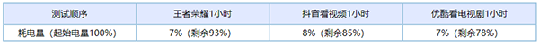 從耗電的情況來看,每一項的耗電量差異不大,以王者榮耀為例,1小時游戲大概玩了三局半,僅耗電7%。換算一下,如果只玩游戲,大約可以玩14個小時,這樣的續(xù)航能力別說是小白了,就算是整天打游戲的職業(yè)玩家也夠用了。對于普通用戶來說,平日使用的話一天一充甚至一天半一充都無壓力。