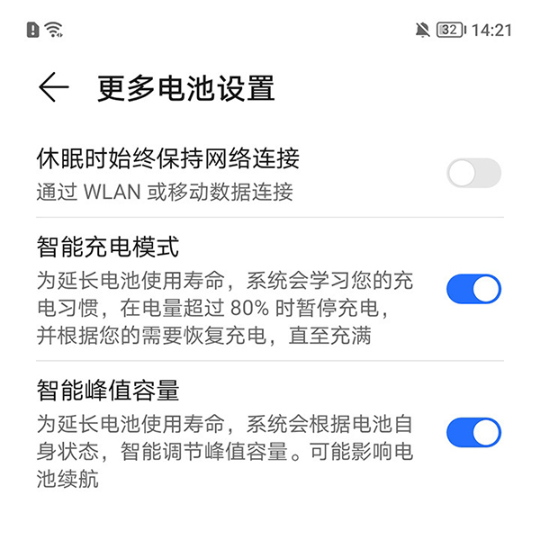 系統(tǒng)默認(rèn)開啟“智能充電模式”