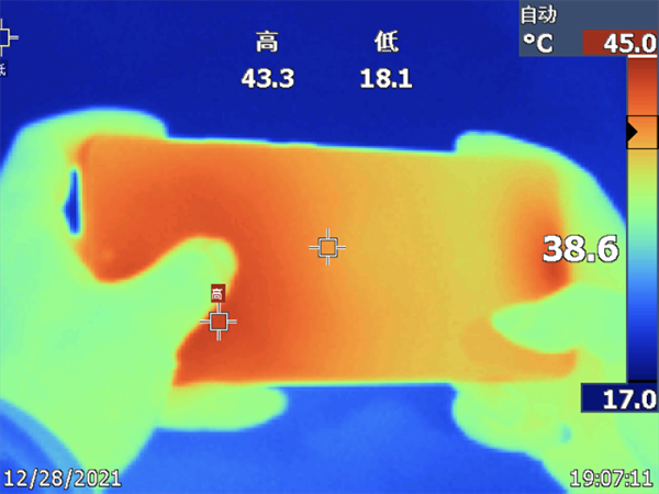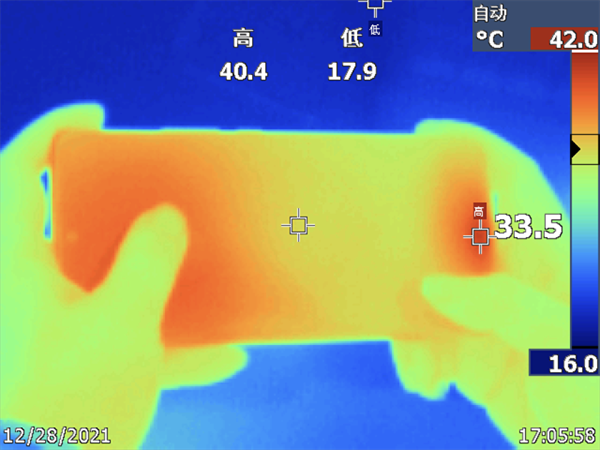 相對(duì)于跑分成績(jī),游戲表現(xiàn)才是我們更關(guān)心的。實(shí)測(cè)性能模式下,《王者榮耀》極高幀率+流暢畫質(zhì)游戲30分鐘,除了兩局中間換局和網(wǎng)絡(luò)卡頓外,基本保持在119幀上下,正面最高溫度為42度左右,背面最高溫度為40度左右,手感機(jī)身溫度最高的位置在背面右側(cè),也是主板和SoC所在之處。