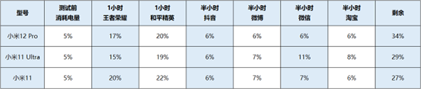 (小米12 Pro與小米11、11 Ultra功耗測試數(shù)據(jù)對比)