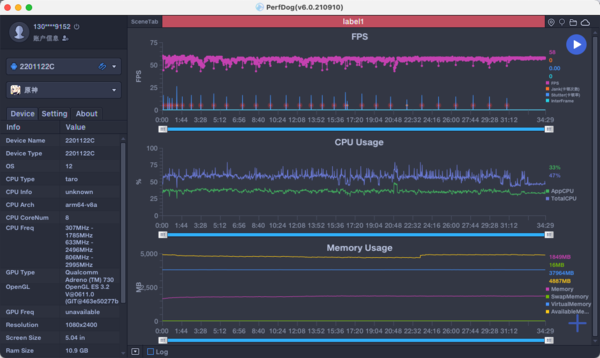 我們是用《原神》這款游戲作為幀數(shù)測試,可以看到,特效拉滿的游戲能夠達(dá)到穩(wěn)定的55.8fps效果,這是很多手機(jī)所不能達(dá)到的,對于支持120fps的游戲來說則效果更加突出,團(tuán)戰(zhàn)穩(wěn)定的畫面陣勢也保證了用戶更正常的發(fā)揮。