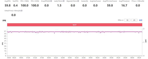 在《和平精英》手游中,iQOO Neo5 SE最高可開啟超高清畫質(zhì)和超高幀數(shù)設置,經(jīng)過PerfDog性能測試分析,游戲平均幀率為59.8幀,一些開車或者對戰(zhàn)場景,也依舊能保證穩(wěn)定的流暢度。