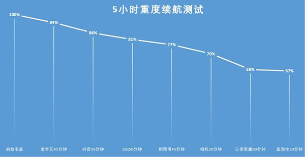 可以看到,經(jīng)過5小時的重度續(xù)航測試后,iQOO U5剩余電量還有57%。并且這還是在重度續(xù)航測試的情況下,對于普通用戶而言,正常使用iQOO U5基本可以做到兩天一充的充電頻率。