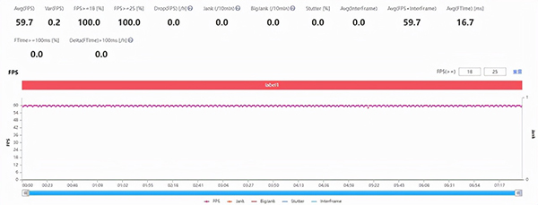 在實測中,vivo S12 Pro可以在《王者榮耀》極致畫質(zhì)并開啟超高分辨率的情況下,實現(xiàn)極為穩(wěn)定的60幀滿幀幀率曲線,平均幀率為59.7幀。