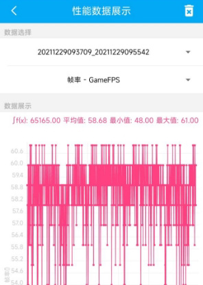 然后我們測試一下《和平精英》,《和平精英》尚未適配90幀模式,因此在HDR高清加60幀模式下進(jìn)行測試。在幀數(shù)圖中可以看出,絕大多數(shù)時(shí)間都是頂著60幀跑的,只有在地圖切換時(shí)會(huì)略微掉幀,游戲體驗(yàn)很順暢,30分鐘游戲后平均幀率為58.7幀。體驗(yàn)同樣很不錯(cuò)。