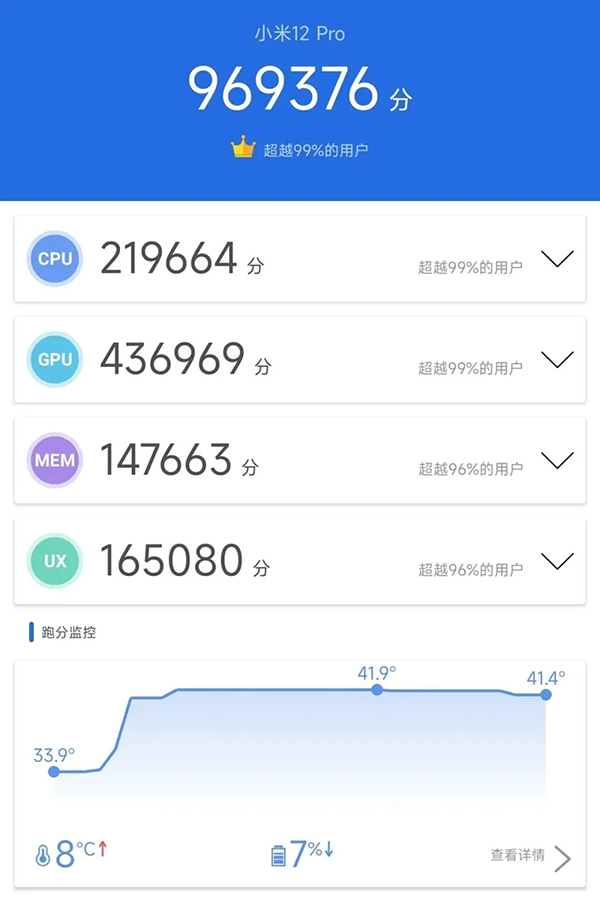 眾所周知,小米數(shù)字系列產(chǎn)品會搭載最新的驍龍芯片,這幾乎才是“最堅定的傳承”,這一次小米12 Pro也不例外,它搭載了全新“一代驍龍8”處理器,在理論性能上面又有了很大的提升。小米12 Pro在“極限模式”下可以輕松跑出一百萬的安兔兔分?jǐn)?shù),而且單次跑分的話發(fā)熱并不明顯;在剛跑完一次的情況下再跑一次分?jǐn)?shù),盡管溫升明顯,但跑分依舊沒有太多的波動;而連著跑第三次,它才會在跑分途中出現(xiàn)一定的性能限制,導(dǎo)致分?jǐn)?shù)下滑到97萬左右——但這個時候溫度也會達(dá)到47℃左右的峰值,幾乎不會再升高了。