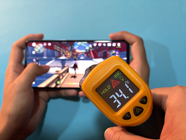 需要注意的是,獨(dú)顯芯片 Pro帶來的不僅是視覺體驗(yàn)上的提升,對于功耗也有一定的改善作用。如圖所示,開啟高幀低功耗模式后,運(yùn)行《原神》半個(gè)小時(shí)后測量機(jī)身正面溫度為34.1℃。如此散熱表現(xiàn),對于一款驍龍888手機(jī)來說,毫無疑問是非常出色的表現(xiàn)。