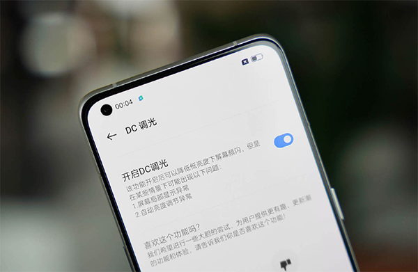 值得一提的是根據(jù)realme官方的信息,真我GT2 Pro屏幕亮度和最低幀率也有對(duì)應(yīng)的關(guān)系:2-30nit時(shí),120Hz不降幀率;30-200nit時(shí),最低10Hz;200-300nit時(shí),最低5Hz;300-800nit時(shí),最低1Hz。所以從這一點(diǎn)也可以看出來(lái),LTPO技術(shù)主要還是降低功耗的。比較好的是GT2 Pro在開(kāi)發(fā)者模式中,也可以打開(kāi)DC調(diào)光,而且DC調(diào)光打開(kāi)后,和高刷并沒(méi)有沖突。