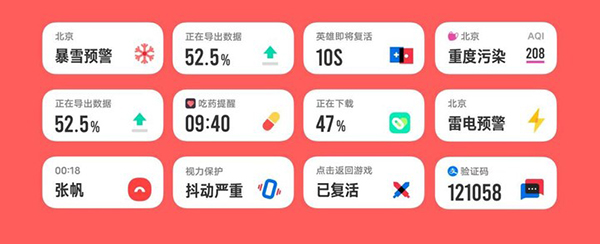 包括原子通知,一些系統(tǒng)級的彈窗都運用了卡片式浮窗提示,與系統(tǒng)的融合程度更深,同時卡片的視覺也獲得升級,不同的卡片顏色會代表著不同的狀態(tài)。