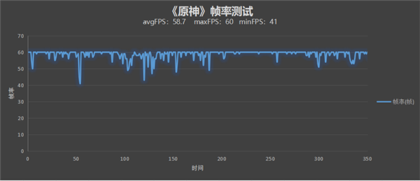iQOO 9 Pro在運行《原神》時不會鎖幀。最高畫質(zhì)+60幀模式設(shè)置下,按照固定的測試路線,雖然有所波動,不過平均游戲幀率依然可以達到58.7 FPS。