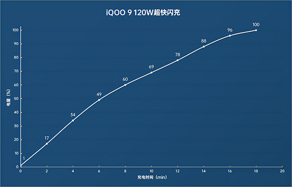 實(shí)測(cè)搭配原裝120W充電套裝,從1%剩余電量開(kāi)始補(bǔ)電,6分鐘時(shí)iQOO 9的電量已經(jīng)恢復(fù)了近五成,這意味著即使遇到低電量緊急情況,只要閃充個(gè)一杯咖啡的功夫,就能迅速脫離低電量焦慮。18分左右,手機(jī)顯示電量達(dá)到100%,整個(gè)充電過(guò)程非常迅速。