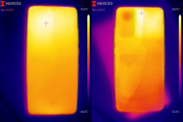 此時(shí)手機(jī)表面最高溫度也才37°C(室溫18°C),控制的非常不錯(cuò)。