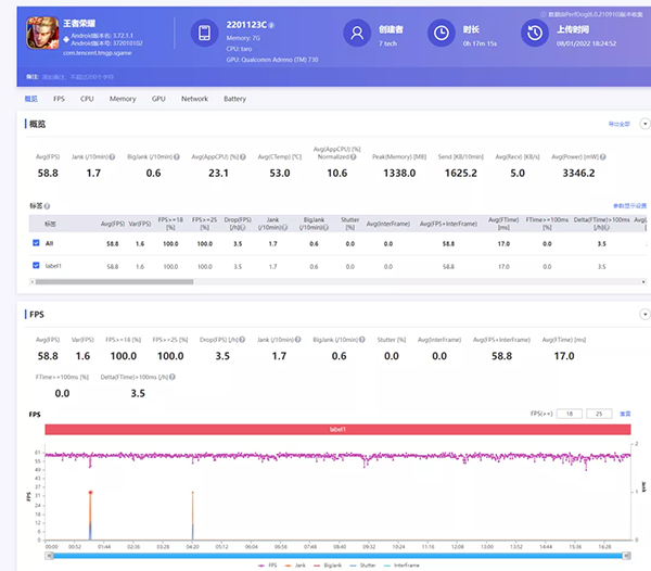 首先是王者60Hz模式,對(duì)驍龍8Gen1來(lái)說肯定沒有壓力,畢竟驍龍778G都能流暢玩(有波動(dòng)是因?yàn)樾∶椎摹皠?dòng)態(tài)性能調(diào)度”,所以沒有一直極限運(yùn)行)。