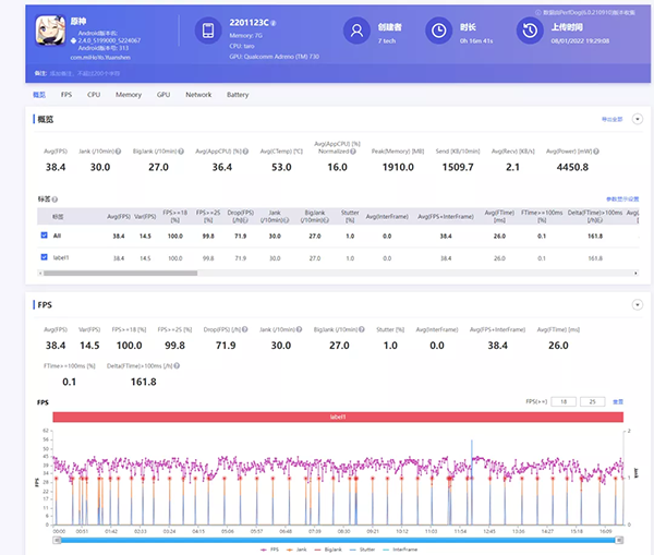 最后是原神,說出來(lái)大家可能不信。小米12在均衡模式下原神被限制到了30FPS,開啟性能模式后才有40FPS,運(yùn)行15分鐘后的平均幀率為38.4FPS。