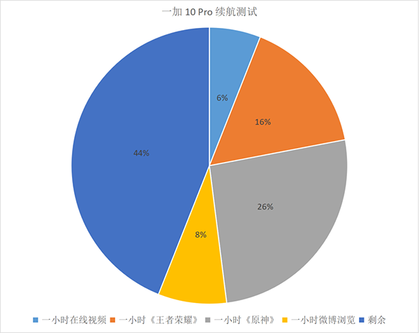 連接WiFi并使用大概40%左右亮度下,在線觀看1080P 60幀電影一小時耗電為6%,游玩一小時《王者榮耀》耗電為16%,游玩一小時《原神》耗電為26%,還有一小時的微博瀏覽耗電為8%。