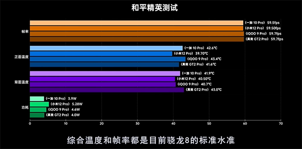 再看溫度方面,在30分鐘的《和平精英》測(cè)試后,一加10 Pro 的正面最高溫度為41.9℃,背面最高為42.6℃,也同樣會(huì)是當(dāng)前驍龍8的標(biāo)準(zhǔn)水準(zhǔn),甚至在功耗方面有一定的優(yōu)勢(shì),意味著整個(gè)過(guò)程中的耗電量還會(huì)更友好一些。