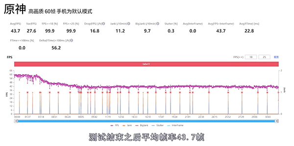 當(dāng)然了,《和平精英》多少也只能算是基本測(cè)試,《原神》測(cè)試效果才會(huì)是大家更想看到的。從實(shí)際的測(cè)試來(lái)看,一加10 Pro以默認(rèn)模式運(yùn)行高畫(huà)質(zhì)60幀《原神》時(shí),前三分鐘基本還能接近于60幀的表現(xiàn),而后的30分鐘里基本穩(wěn)定在了43.7幀之上,全程沒(méi)有大幅度的波動(dòng)。而像在同樣搭載著驍龍8處理器的友商新機(jī)測(cè)試中,其幀率表現(xiàn)在后期基本有點(diǎn)“跌宕起伏”的意思,跳動(dòng)的幅度較為明顯,實(shí)際感受中也可明顯感知到畫(huà)面的波動(dòng),這一點(diǎn)一加10 Pro的“穩(wěn)”顯然效果更優(yōu)。