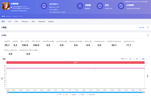 《王者榮耀》-PerfDog軟件幀率測試結(jié)果