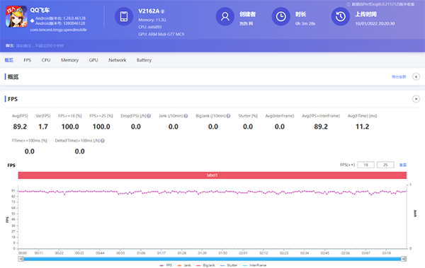 另外《QQ飛車》游戲也支持90幀模式,PerfDog軟件記錄到的平均幀數(shù)為89.2幀,同樣可以提供流暢的高幀體驗。游戲中各種操作響應(yīng)也十分迅速,帶來出色的高幀游戲體驗。