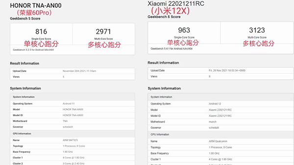 綜合來看兩款手機的核心性能。高通驍龍870處理器的性能更為優(yōu)異,但制作工藝上較為一般,這款處理器主要偏重于運算力,更適合游戲。而驍龍778G Plus處理器在核心性能也算是出眾,制作工藝上較為先進些,這顆芯在綜合地實力上還是有著一定優(yōu)勢,也得益于榮耀60 Pro后期的調(diào)校與優(yōu)化,使得游戲性能上的表現(xiàn)也尚可。總體而言,兩顆芯更像是:一顆是商用的CPU,更注重的是運算速度。另一顆是家用的CPU,不好不壞足夠用些年。