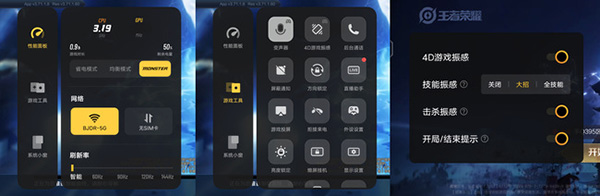 除了性能表現(xiàn)本身以外,iQOO Neo5 SE還提供了完善的外圍優(yōu)化體驗(yàn),游戲中側(cè)滑呼出游戲助手可以直接調(diào)用眾多的游戲相關(guān)功能。性能面板中,用戶不僅可以在省電-均衡-Monster三種模式間快捷切換,還能進(jìn)行網(wǎng)絡(luò)和刷新率相關(guān)設(shè)置調(diào)節(jié)。4D振感針對(duì)不同技能、擊殺數(shù)、開(kāi)局/結(jié)束等場(chǎng)景,都有針對(duì)性調(diào)節(jié)的振動(dòng)反饋,令用戶在不同場(chǎng)景有不同體感,游戲的沉浸體驗(yàn)更佳。