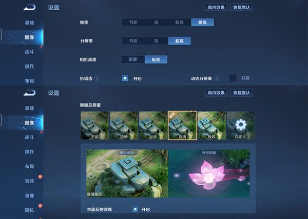 首先是《王者榮耀》,對(duì)于驍龍870機(jī)型的常規(guī)水平大家都心理有數(shù),所以直接選擇「極高幀率(120幀)+超高清分辨率+高清畫(huà)質(zhì)+抗鋸齒/水面反射 開(kāi)」,將其負(fù)載拉到當(dāng)前開(kāi)放的最高程度。
