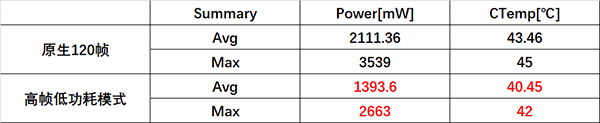 實際游戲測試中,iQOO Neo5S帶來的成績也是令人滿意的,我用《王者榮耀》在開啟最高設(shè)置的情況下,平均幀率達到了118.8FPS,這近乎是滿幀運行了。而在開啟獨顯芯片的高幀低功耗模式(插幀至90)的情況下,30分鐘耗電量相差約4%,10分鐘左右平均功耗相差717.76mW,平均溫度也相差約3℃,足以見得獨顯芯片Pro確實有著省電、降低功耗和溫度的作用,實際游戲體驗令人滿意。