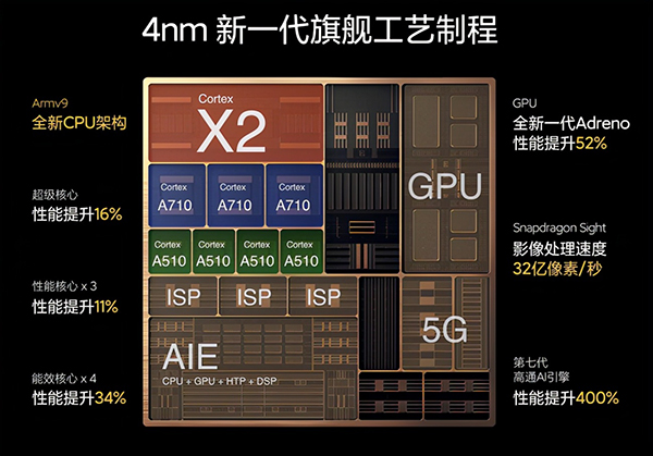 首先是硬件規(guī)格,小米12 Pro搭載了驍龍8 Gen1移動(dòng)平臺(tái)處理器,配套滿血6400Mbps LPDDR5 RAM +滿血UFS 3.1 ROM。作為2022旗艦,驍龍8基于4nm制程工藝打造,CPU為三叢集設(shè)計(jì),1顆3.0GHz Cortex-X2超大核 +3顆2.5GHz A710大核 +4顆1.8GHz A510能效核心。GPU為5年來(lái)第一次架構(gòu)升級(jí),圖像渲染速度提升30%,能效比提升25%。還有4倍性能的第7代AI Engine和處理速度達(dá)到32億像素每秒的18bit ISP,提升是全方位的。
