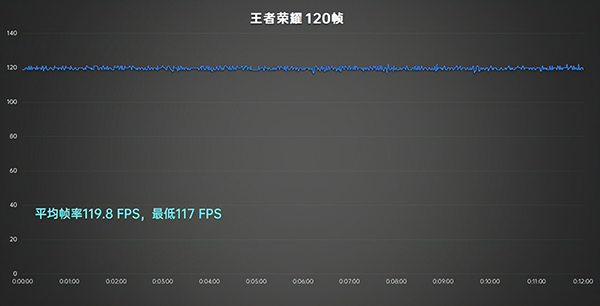 小米12 Pro的表現(xiàn)沒有讓大家失望,平均幀率119.8 FPS,穩(wěn)穩(wěn)貼在120幀直線上,最低幀率也有117FPS,全程包括團(tuán)戰(zhàn)在內(nèi)畫面流暢,操控響應(yīng)靈敏,玩家游戲水準(zhǔn)可以得到最充分的發(fā)揮。