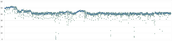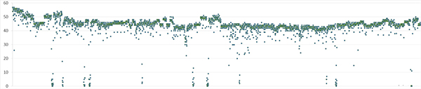 一加10 Pro在《原神》里的表現(xiàn)還不錯(cuò)。在游戲開始的約3分鐘內(nèi)游戲幀率可以跑到55fps~60fps。連續(xù)運(yùn)行1個(gè)小時(shí)游戲,一加10 Pro的幀率基本保持在40fps之上。整個(gè)幀率從最高到穩(wěn)定是逐漸下降,主觀給人的流暢度感覺還可以。