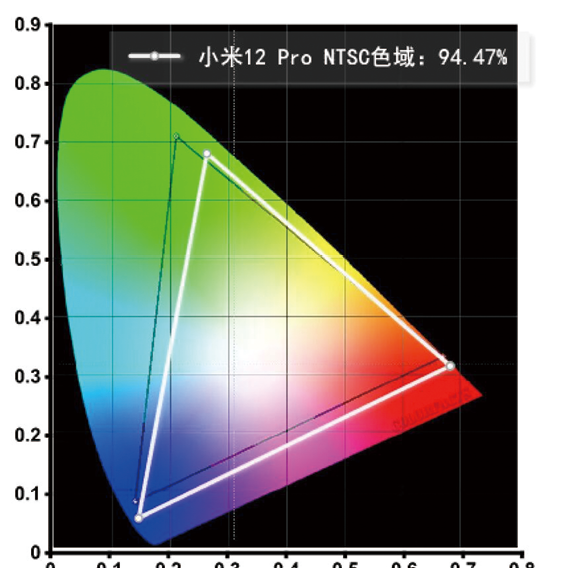 色彩方面,小米12 Pro的屏幕支持10bit色深和10.7億色顯示,屏幕色彩還原準(zhǔn)確,顯示效果更加真實(shí),甚至能夠滿足專(zhuān)業(yè)用戶對(duì)色彩顯示的要求。我用柯尼卡美能達(dá)CS-200色彩亮度計(jì)對(duì)這塊屏幕色域進(jìn)行測(cè)試,生動(dòng)模式下小米12 Pro的屏幕覆蓋了94.47%的NTSC色域,色彩顯示鮮艷亮麗。當(dāng)然,你也可以將屏幕顯示模式改為鮮艷模式或原色模式,從而滿足不同的色彩需求。