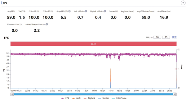 半小時《原神》測試中,游戲平均幀數(shù)保持在51.9fps上,沒有出現(xiàn)降頻鎖幀。