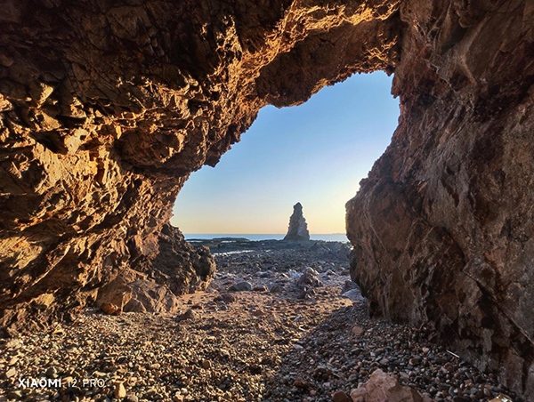 實際體驗中,小米12 Pro檢測到大光比環(huán)境自動啟用 HDR 模式。從樣張不難看出小米12 Pro 呈現(xiàn)的山洞內部石壁紋理細節(jié)豐富,無明顯噪點;天空以及水面反射部分高光無益處現(xiàn)象,畫面寬容度優(yōu)異。雖說天空與石壁相接部分算法痕跡較為明顯,但瑕不掩瑜。