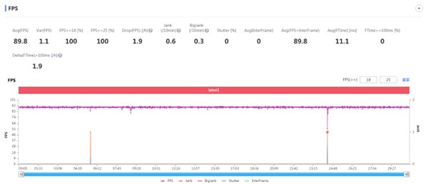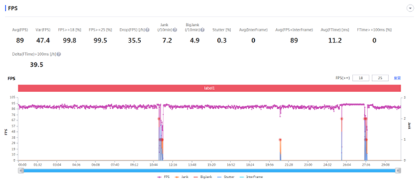 (和平精英90幀模式30分鐘,平均幀率:89.8fps)