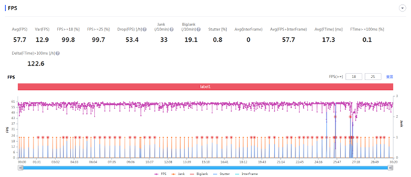 (原神60幀模式30分鐘,平均幀率:57.7fps)