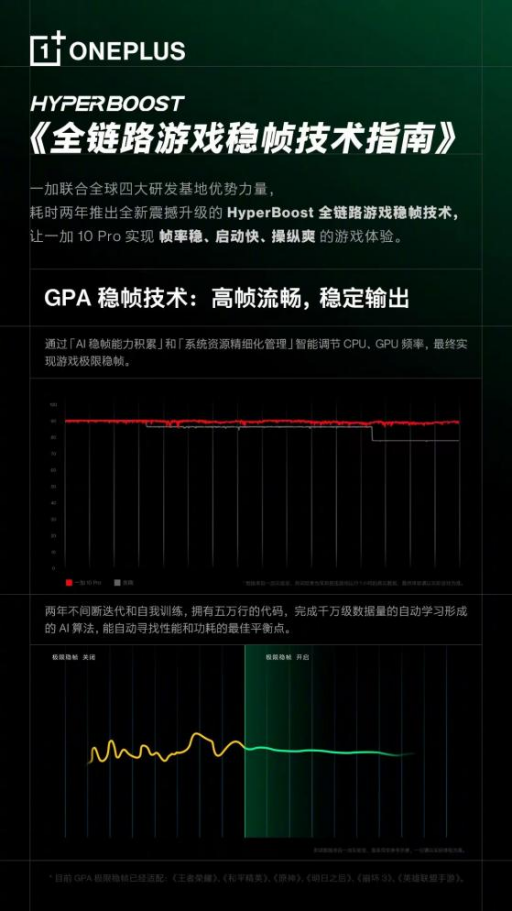 一加憑借多年與用戶交流及積累的相關(guān)經(jīng)驗(yàn)明白目前玩家們對(duì)于游戲的體驗(yàn)主要來(lái)自三方面:游戲畫(huà)面的高癥流暢與穩(wěn)定?!癏yperBoost全鏈路游戲穩(wěn)幀技術(shù)”正是通過(guò)對(duì)這三方面的重點(diǎn)技術(shù)覆蓋,幫助一加10 Pro的用戶們實(shí)現(xiàn)幀率穩(wěn)、啟動(dòng)快、操縱爽的游戲體驗(yàn)。