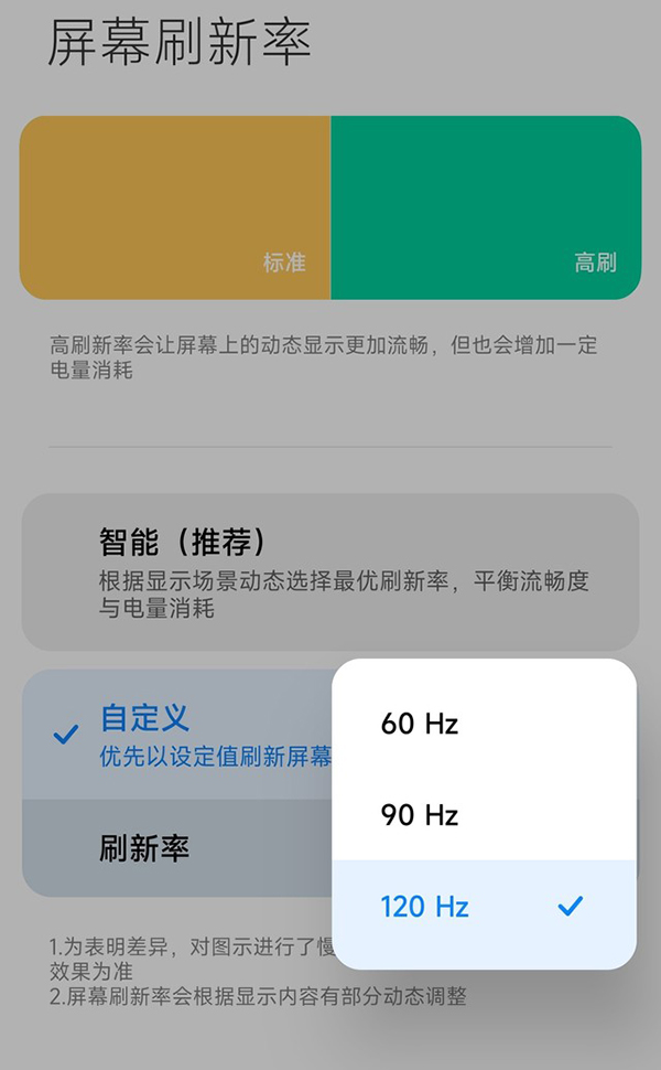 屏幕刷新率選項