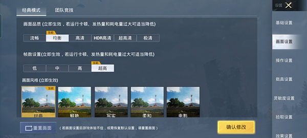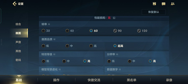 在《王者榮耀》的設(shè)置中,我們將畫面設(shè)置為高清+分辨率超高+幀率高,開啟抗鋸齒。