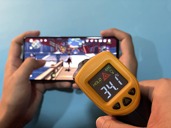 10分鐘游戲結(jié)束后,使用溫槍發(fā)現(xiàn)iQOO Neo5S屏幕最高溫度為34.1℃,機身背部最高溫度為39.6℃,說明高導稀土散熱在溫控方面確實有獨到理解。