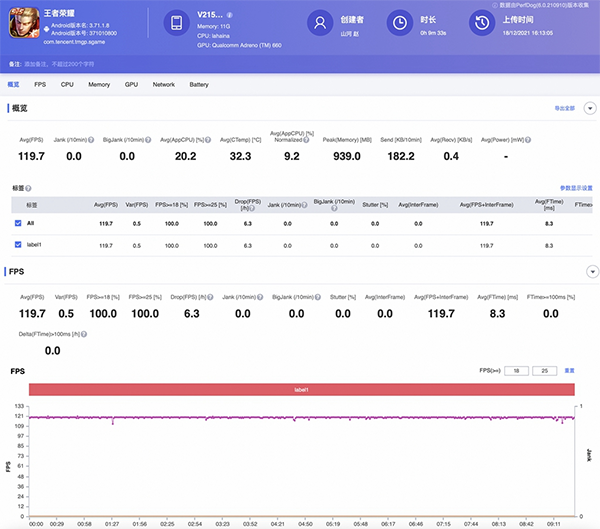 我用iQOO Neo5S試玩了120幀模式的《王者榮耀》,發(fā)現(xiàn)在強(qiáng)悍性能的加持下,它在高幀率游戲場景中確實(shí)擁有穩(wěn)定的運(yùn)行表現(xiàn),即使是在游戲特效繁多的團(tuán)戰(zhàn)場景中,也沒有出現(xiàn)卡頓等問題,讓我能夠更好地掌握團(tuán)戰(zhàn)時機(jī)。在專業(yè)軟件的測試下還能看到,iQOO Neo5S玩《王者榮耀》時的平均幀率達(dá)到了119.7幀,接近滿幀狀態(tài),這再次證明了該機(jī)的游戲表現(xiàn)非常優(yōu)秀。
