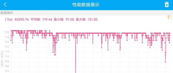 從紙面看,這個配置運行熱門的大型手游應該是毫無壓力的,在《王者榮耀》120幀游戲測試中,iQOO Neo5S在均衡模式和性能模式的平均幀率都表現(xiàn)亮眼,分別能達到118幀和119幀,可以看到性能模式要略高一些,主要原因是在性能模式下,幀率的波動會更少,整體表現(xiàn)得更平穩(wěn)。