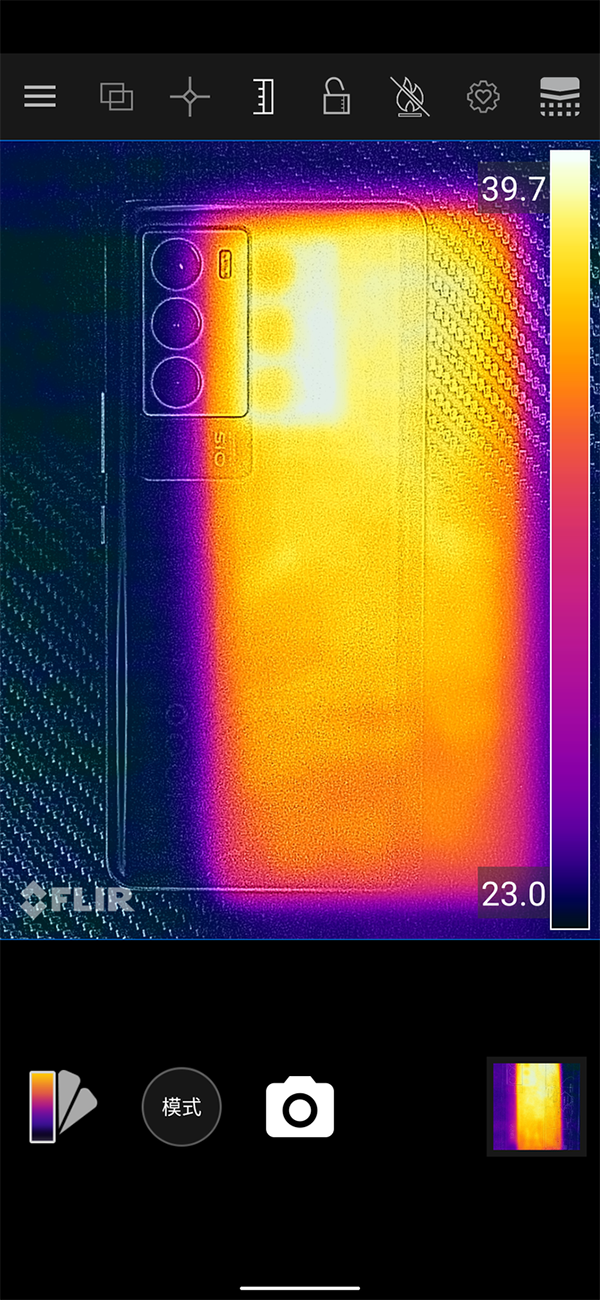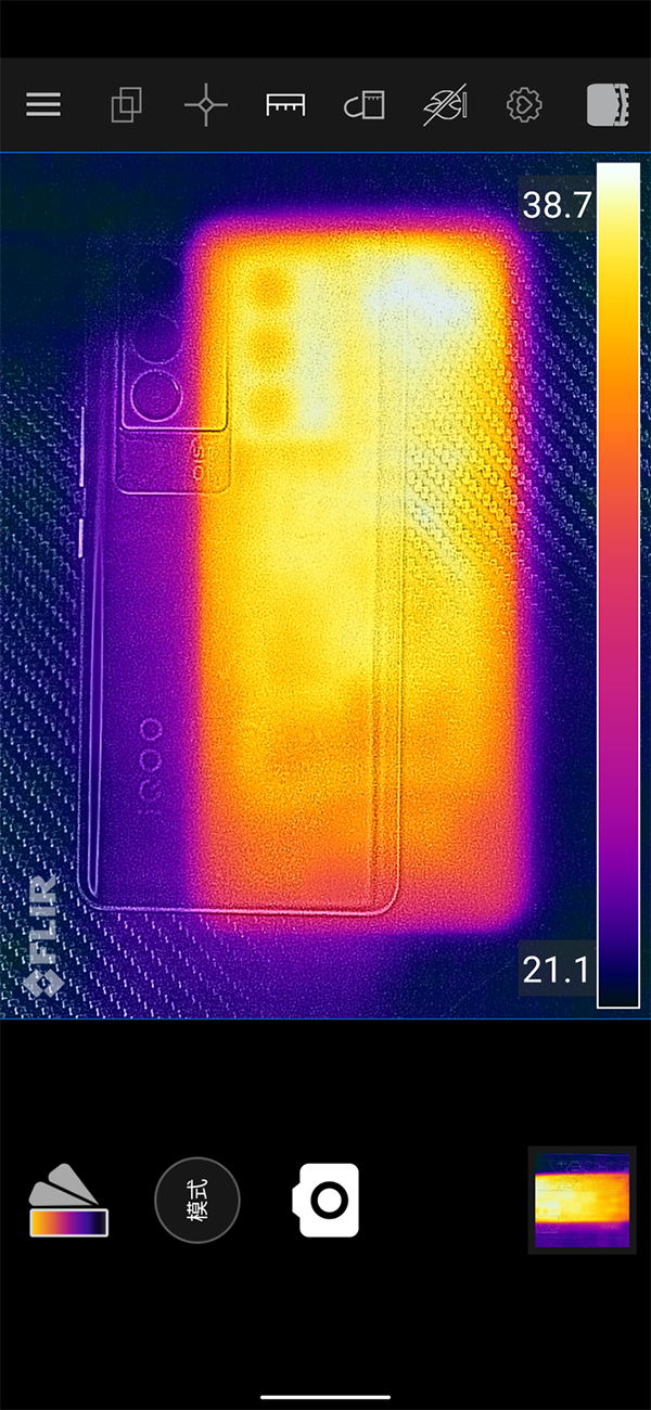 性能的強勁勢必會帶來更多的散熱,為此,iQOO為該機精心準備了許多散熱裝置,比如大面積添加了稀土元素(鑭、鈰)的高導熱合金散熱材料,配合石墨板和液冷均熱板,大幅提升了其散熱效果。我們先測試了散熱表現(xiàn),一個小時《王者榮耀》,開啟120幀,溫度僅37.4℃,一小時《原神》全高畫質(zhì)60幀模式下的溫度僅39.7℃,這個溫度連個暖手寶都不如,散熱表現(xiàn)完全能夠符合各位游戲玩家的要求了。