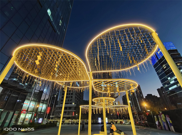 而在室外場景,iQOO Neo5S的出片率依然很高,不僅畫面整體細(xì)節(jié)表現(xiàn)力出色,還沒有出現(xiàn)鬼影、眩光等問題,再加上超級(jí)夜景算法的加持,整體成像效果可以說完全不輸主打影像的旗艦手機(jī)。