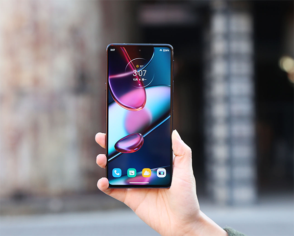 就像大家所看到的這樣,這次摩托羅拉edge X30并沒有用21∶9屏幕,而是比較常見的20∶9比例。全面屏方案為中置挖孔,開孔孔徑非常小,上、下、左、右四個邊框?qū)挾纫埠苷疗林笳w觀感很棒。由于是直屏,日常使用過程中也不需要擔(dān)心誤觸問題。