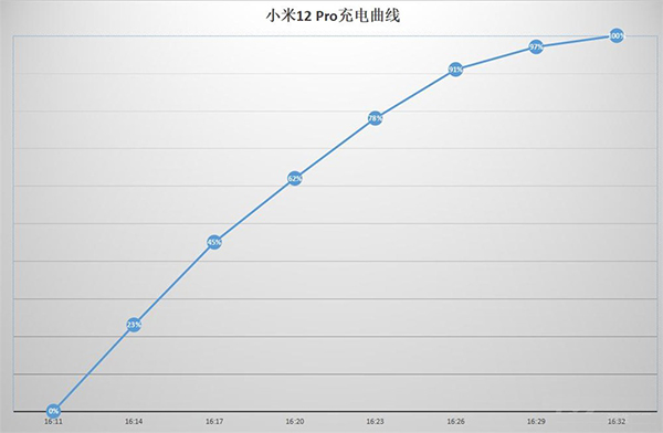 120W快充一般都是雙電芯方案,這次小米12 Pro用上了自研澎湃芯片,加大了自身創(chuàng)新技術(shù)的投入,效果上來說和過去的120W沒什么太大的差別,從零充滿需要21分鐘,涓流充電過程意外的短,前期9分鐘就能充入62%,10分鐘就能充到接近70%,算是非常不錯(cuò)了。