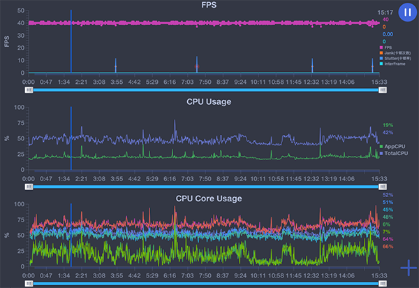 再來看看OPPO A96在另一款非常熱門的游戲《和平精英》上的表現(xiàn),OPPO A96目前可以開啟到的最高設(shè)置為均衡畫質(zhì)加上超高的幀數(shù),超高設(shè)置的幀數(shù)為40幀。在實際游玩中,通過PerfDog記錄到的平均幀數(shù)為39.9幀,波動僅為0.4FPS,表現(xiàn)算是不錯的水平。而且,OPPO A96的屏幕擁有最高180Hz的觸控采樣率,讓游戲體驗足夠跟手,減少操作失誤的問題。