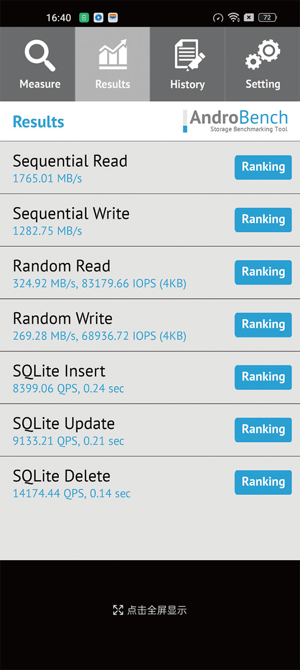 在測試內(nèi)存的AndroBench中,一加10 Pro得到了1765MB/s的順序讀取和1282MB/s的順序?qū)懭敕謹?shù)。